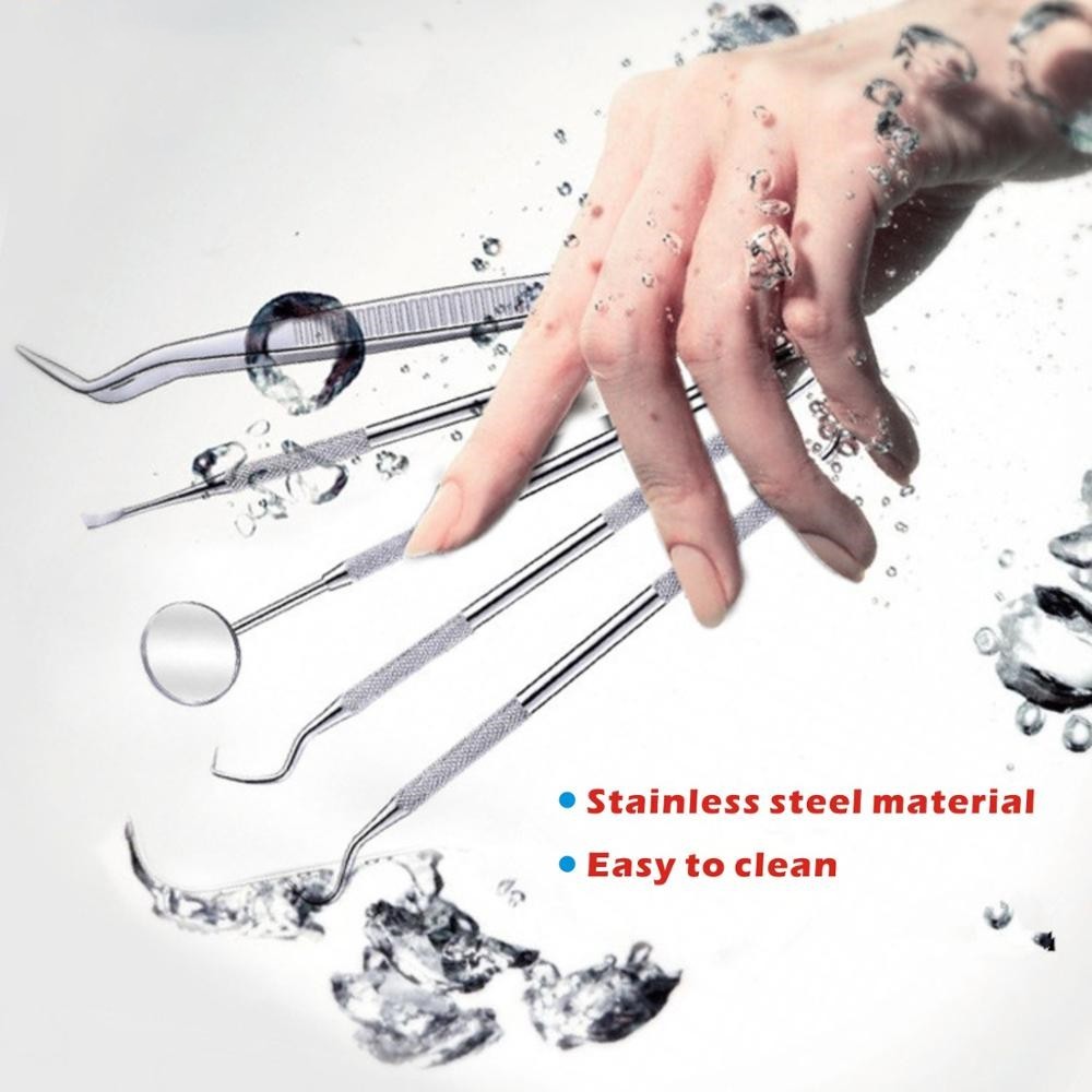 1. Comprend un grattoir à tartre, un miroir buccal antibuée, un détartreur dentaire, un cure-dent dentaire.