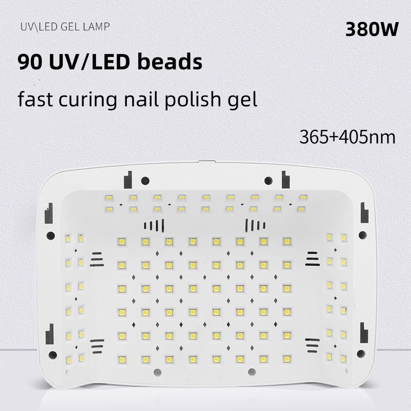 Sèche-ongles professionnel 380 W 90 LED Lampe UV pour séchage de tous les vernis à ongles en gel détection de mouvement manucure pédicure