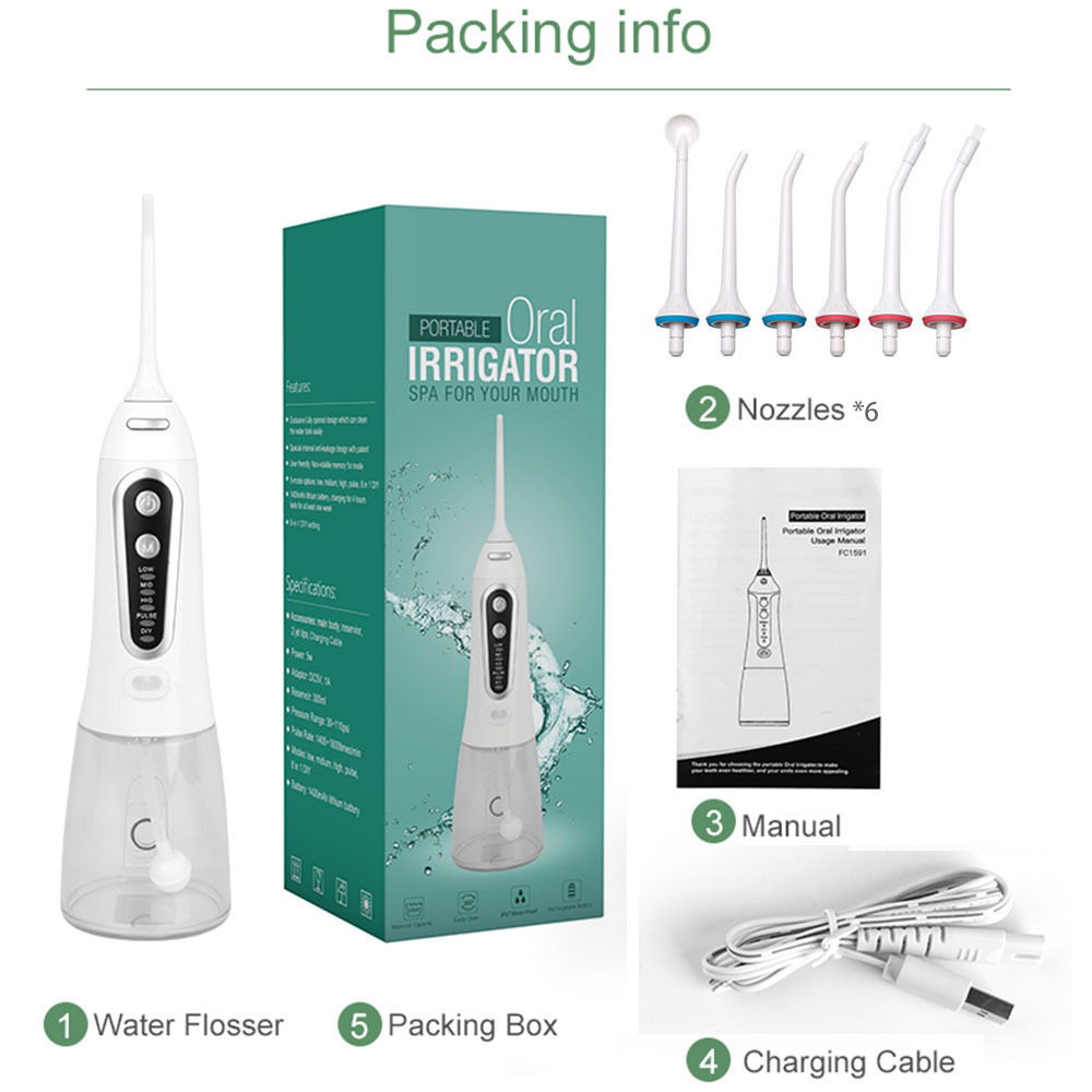 Irrigateur buccal à 5 ​​modes, fil dentaire portable, rechargeable par USB, eau