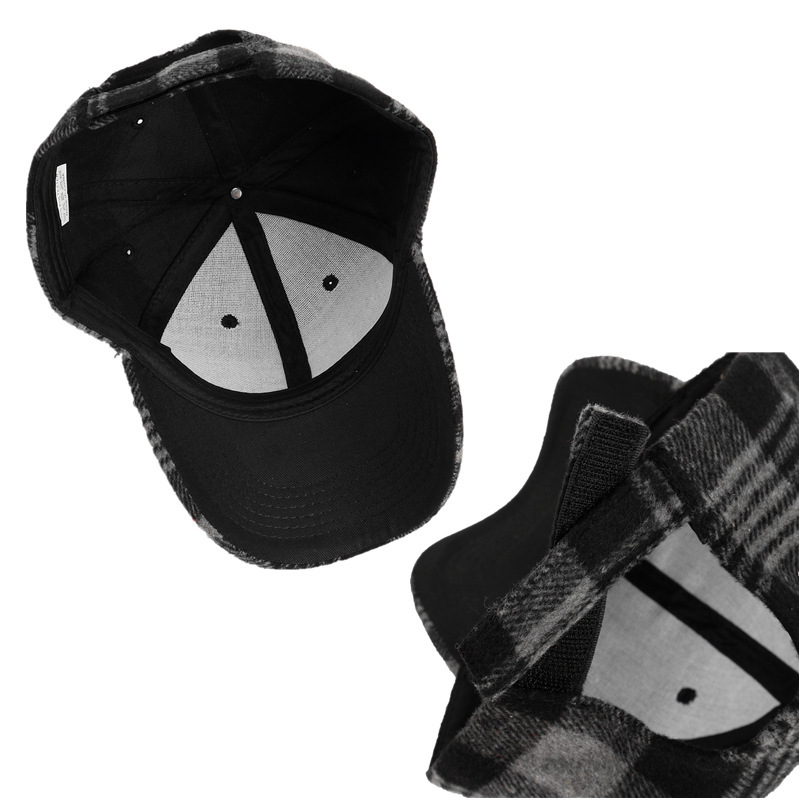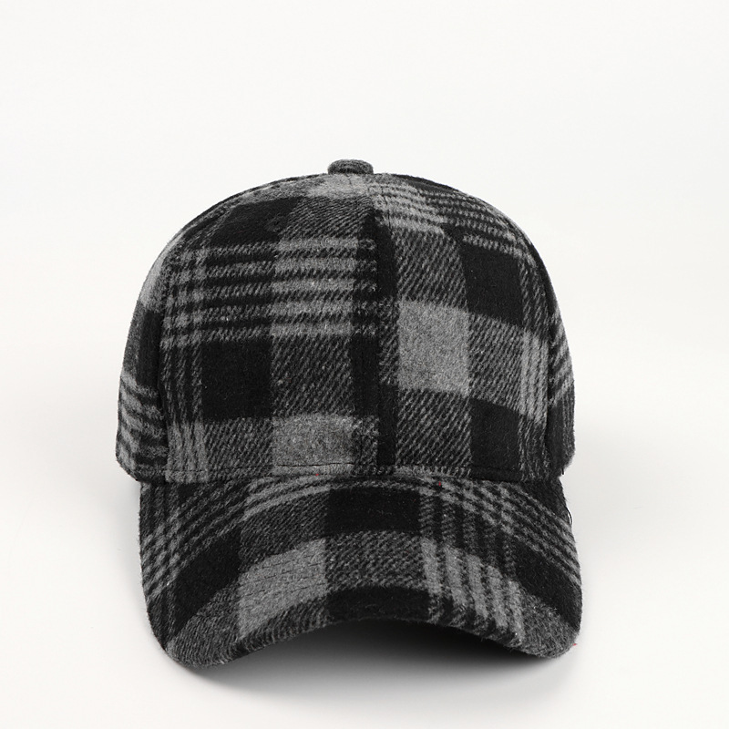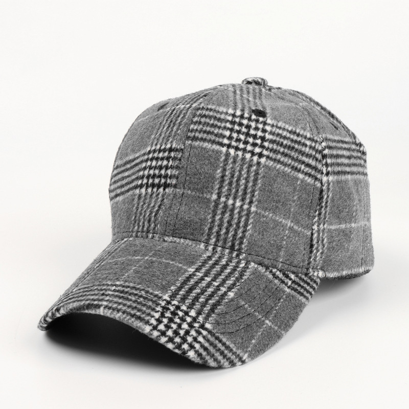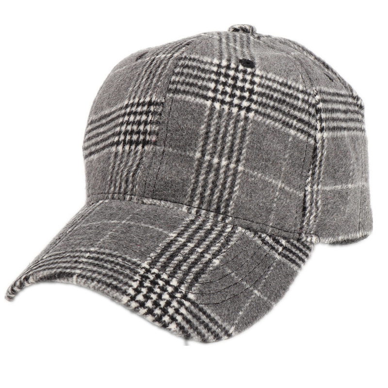 Casquette de baseball à visière rigide en laine à carreaux pour femme