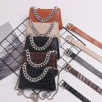 Tour de taille réglable Largeur de ceinture complète 100 Largeur de ceinture en cuir 2,3 Sac (longueur du côté supérieur 16 longueur du côté inférieur 18 largeur 11) Longueur de chaîne fine 100 largeur 0,7 Longueur de chaîne épaisse 25 largeur 2