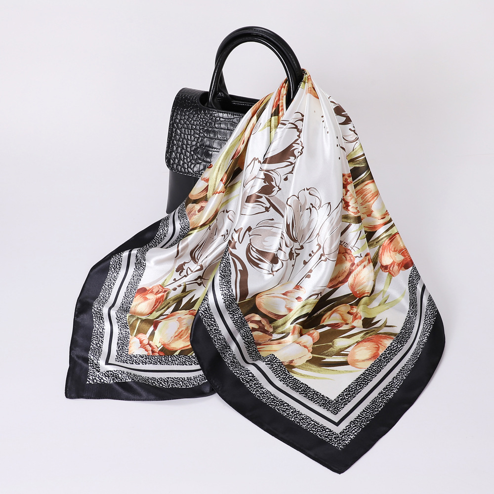 Foulards en soie imitée haut de gamme élégants à fleurs pour femmes