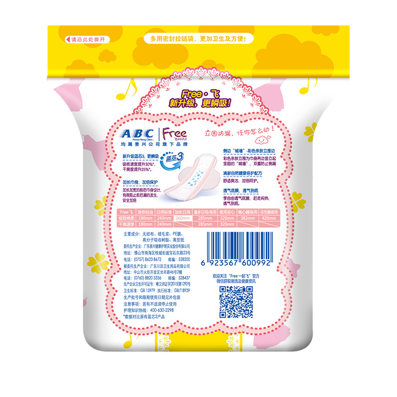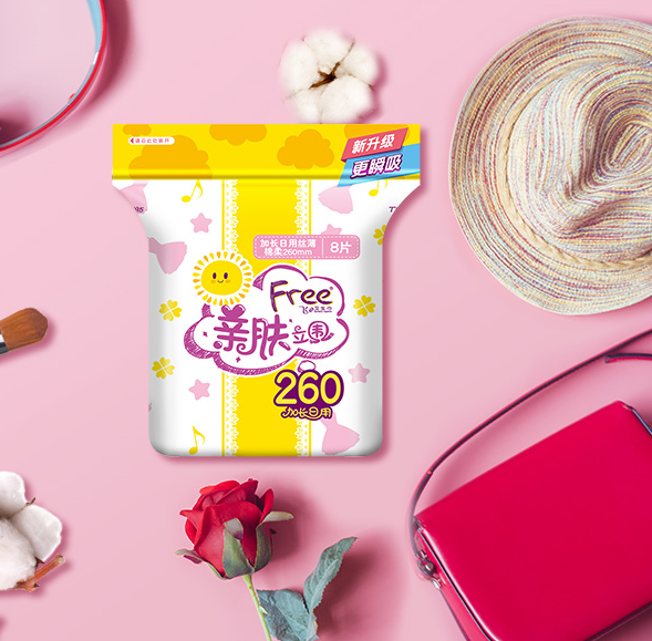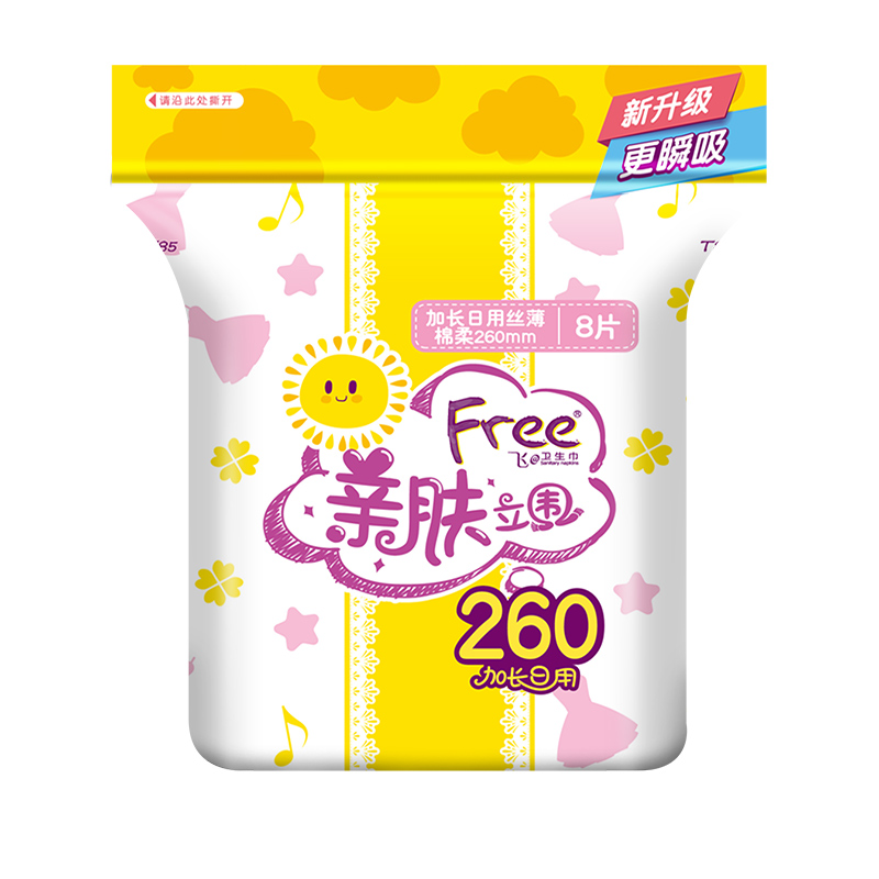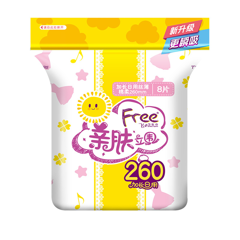 Serviette hygiénique en coton fin à surface douce et douce pour la peau, allongement quotidien gratuit / Feifei 260 fils verticaux 8 pièces