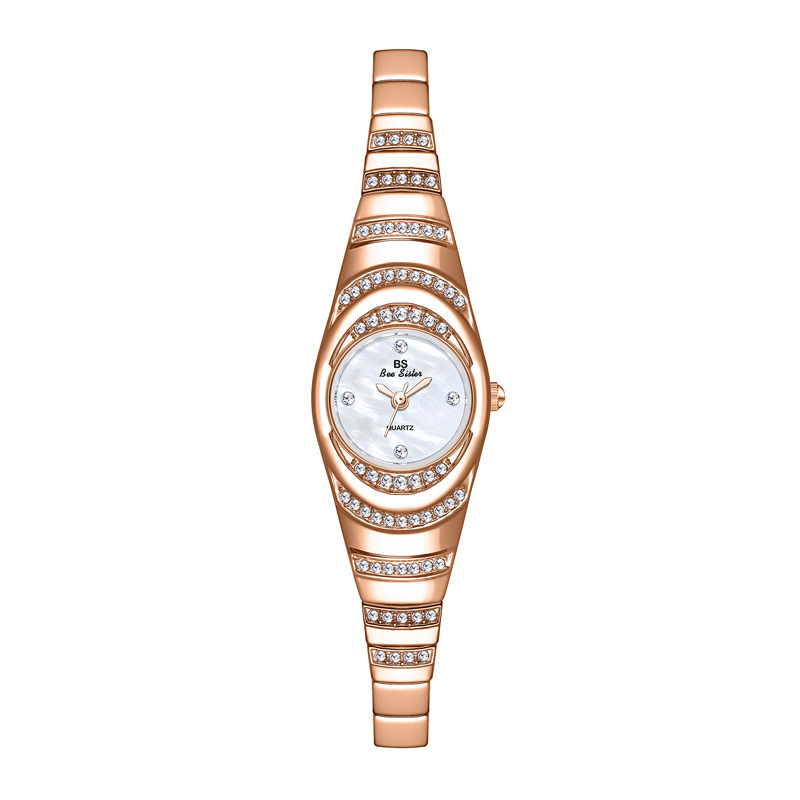 Nom du produit : Montre pour femme de style DZ Shiweibao avec calendrier, bracelet en or et pierre, grand cadran
