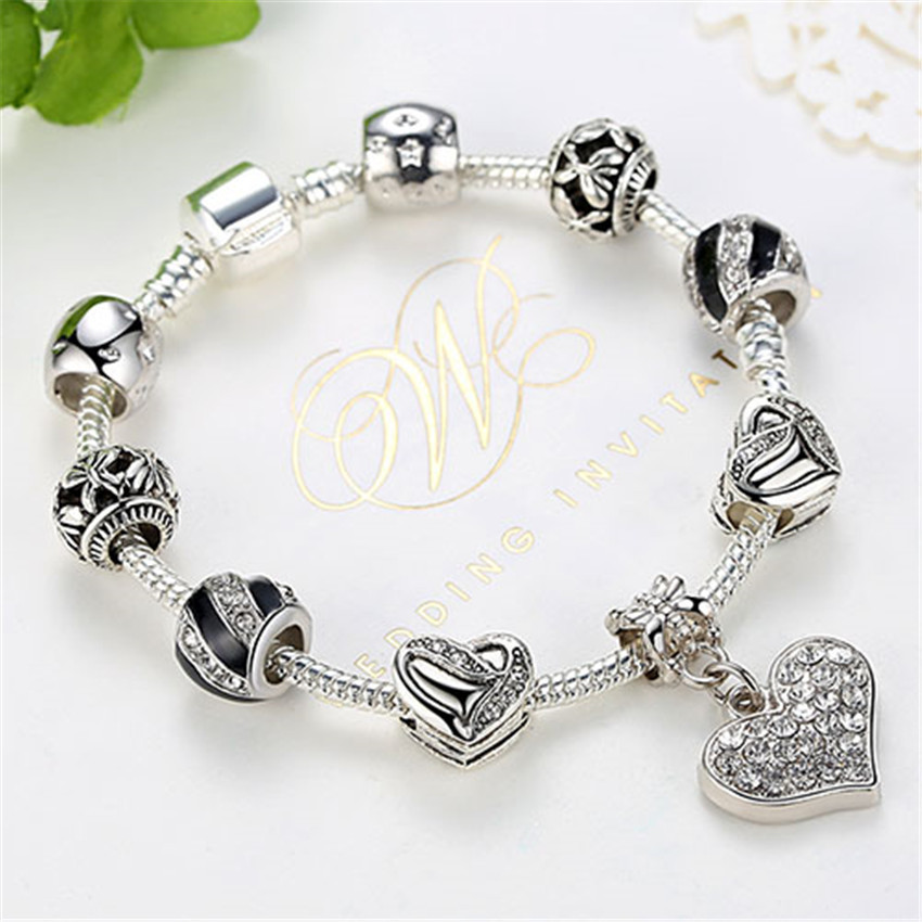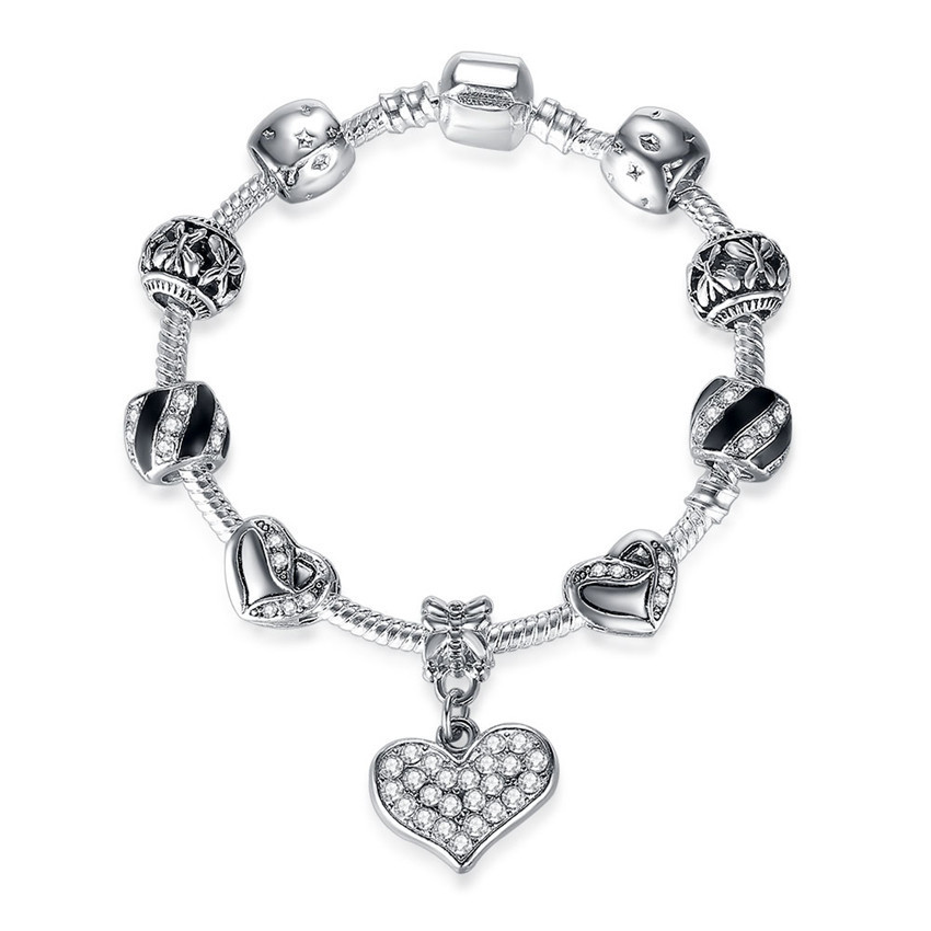 Bracelet en alliage de diamants en forme de coeur pour femmes
