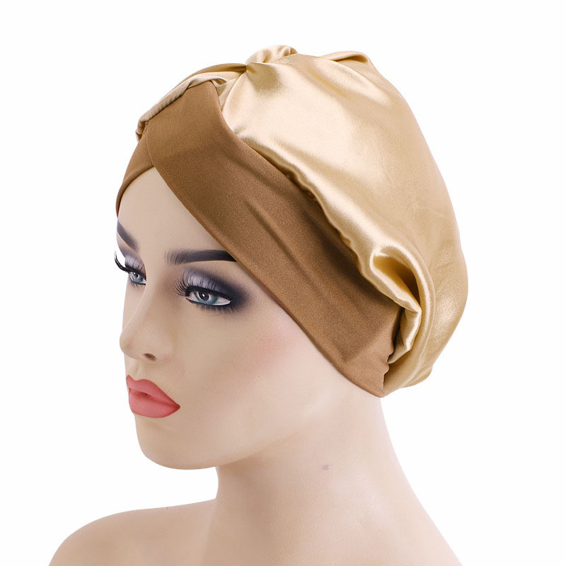 Home CHAPEAUX Bonnets de nuit Bonnet de nuit en satin à bords croisés de couleur unie pour soins capillaires