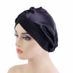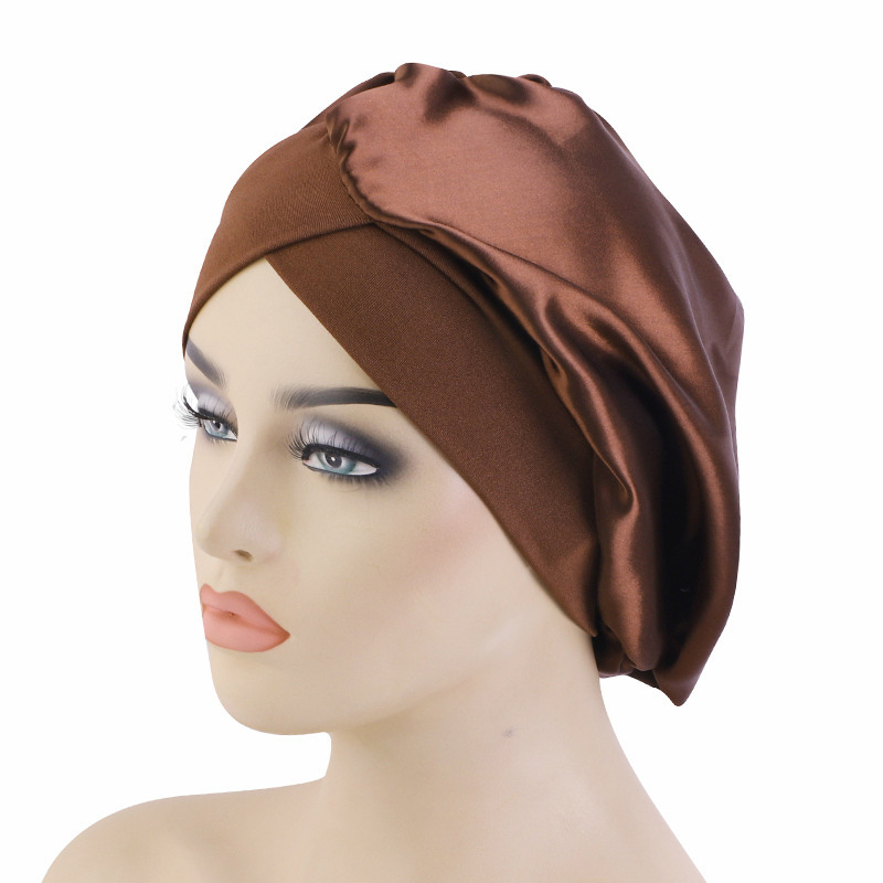 Bonnet de nuit long tube en satin à large bord élastique pour femme
