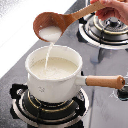 Marmite à soupe en émail avec revêtement antiadhésif et double bec avec poignée en bois CHF 51.33 – CHF 58.83